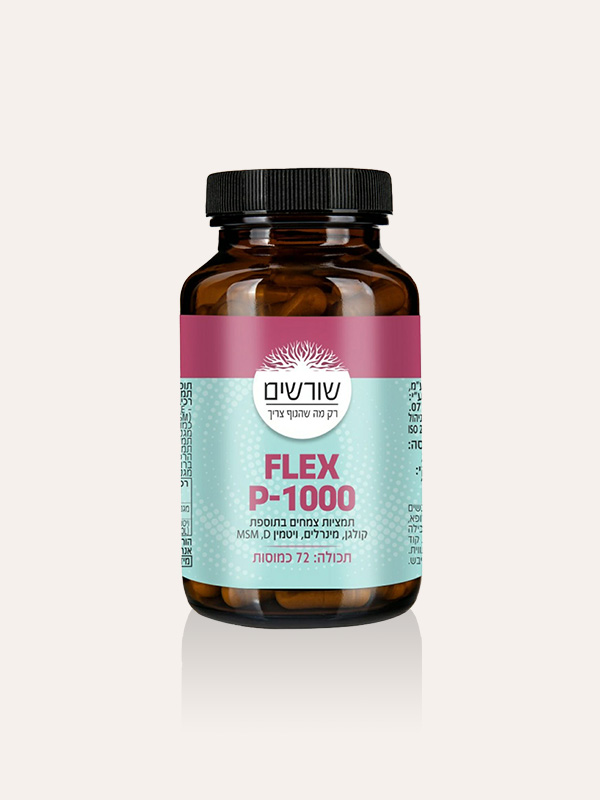 שילוב רב עוצמה של רכיבים טבעיים Flex P 1000, מוצר מבית שורשים, מציע פריצת דרך בתחום הטיפול במערכת השלד והשרירים. הפורמולה הייחודית של Flex P